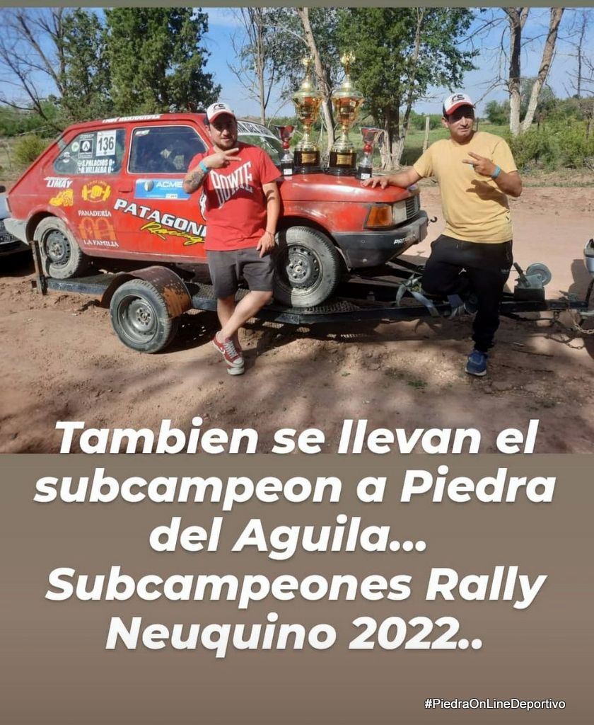 Piedra del Águila.- Cansancio, emoción, días de trabajo contra el tiempo y los resultados. El colorado que avanzaba y el percance, siguió la lucha...2do Puesto en la Copa Coronación a Letín Cancio. Pero eso no es todo...el binomio de Piedra del Águila, quién cuenta con un apoyo de Lujo del Patagonia Racing, se alzaron con el SubCampeonato del Rally Neuquino.
